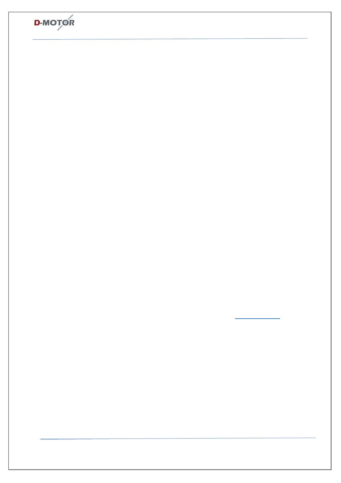 listed in this section, “Contact Information” or send comments via e-mail to info@d-motor.eu. Notify