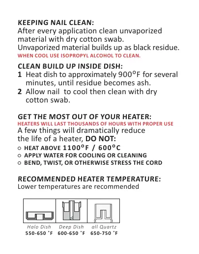 RECOMMENDED HEATER TEMPERATURE: