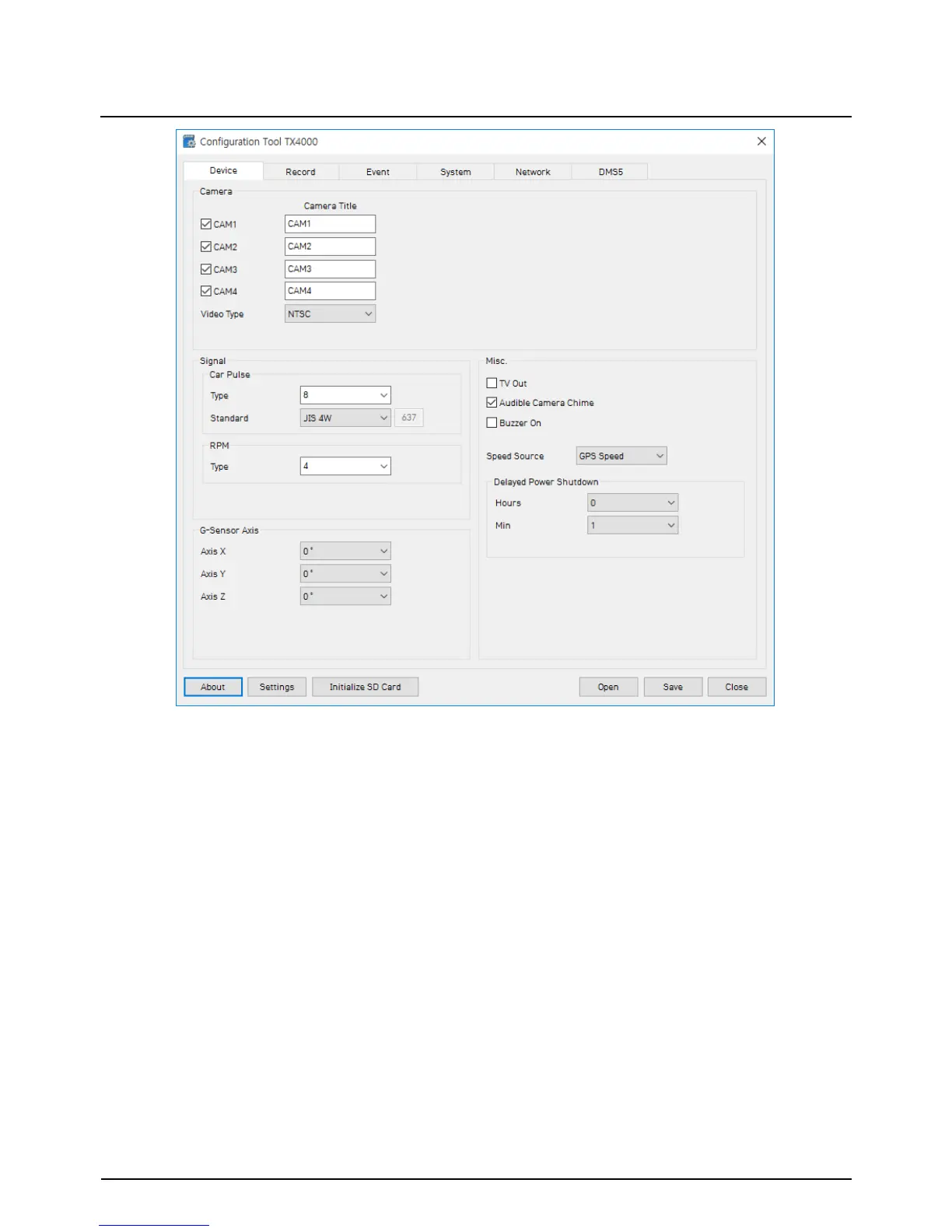 G-Sensor Axis: Refer to page 14 in this manual and set Axis.