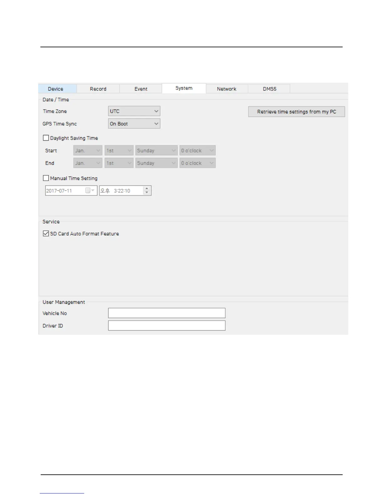 This option allows you to adjust the Time Zone, GPS Time synchronization,