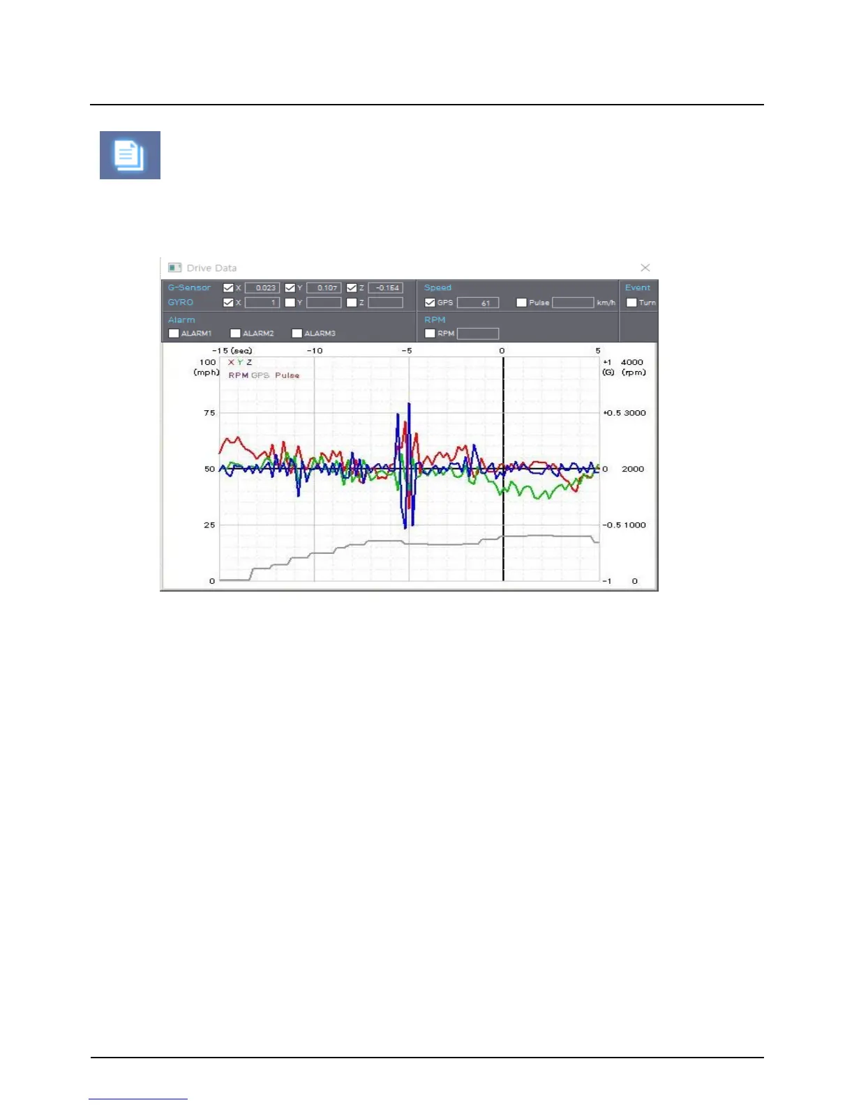 The default setting only displays the G-sensor graphs but other information may be