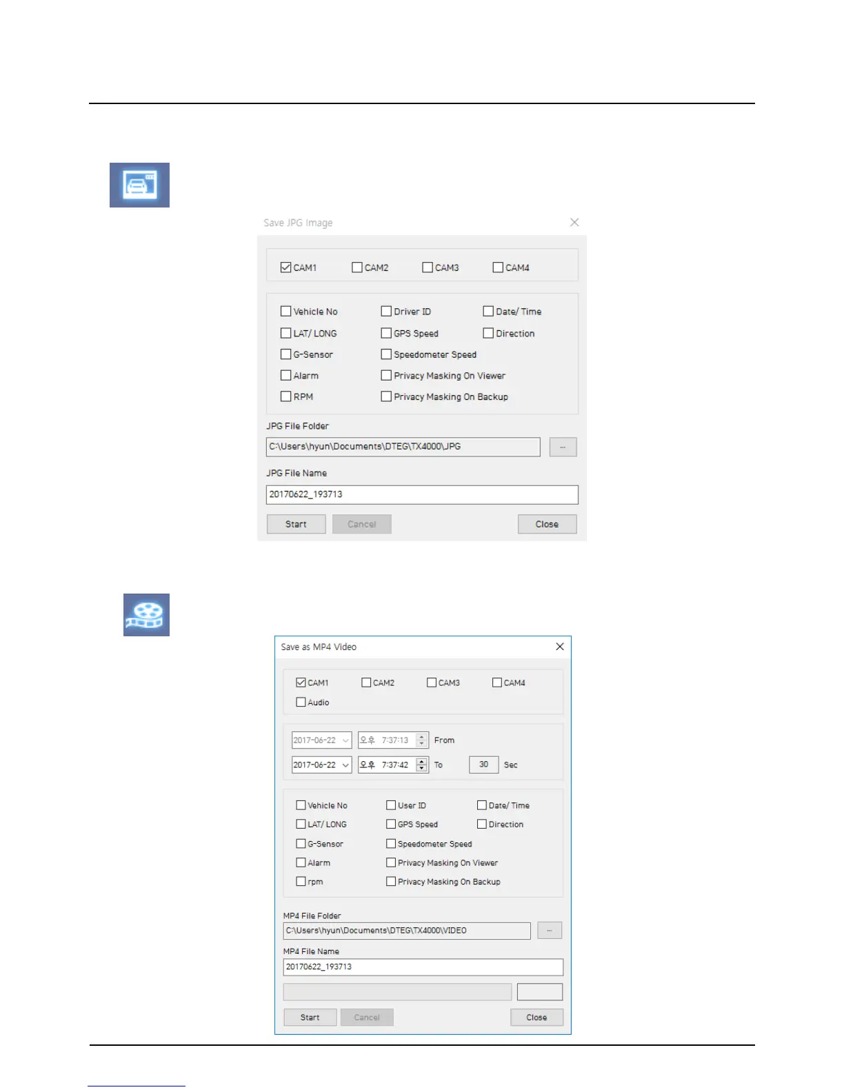 D-Teg TX4000B - SAVE JPEG AND MP4 FILE; Saving Still Images and Video Clips
