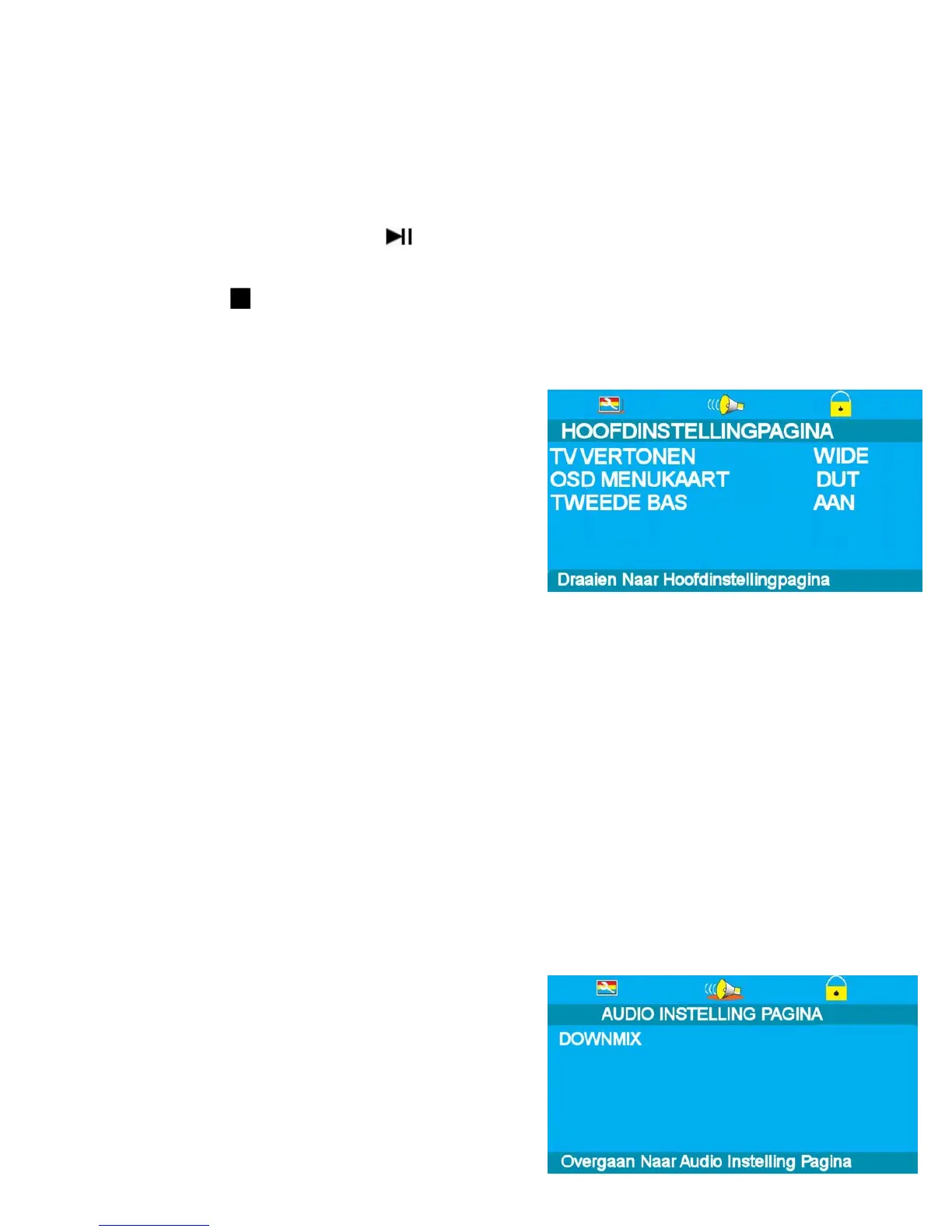 language using the ► and /▼ buttons. Default is Nederlands. If