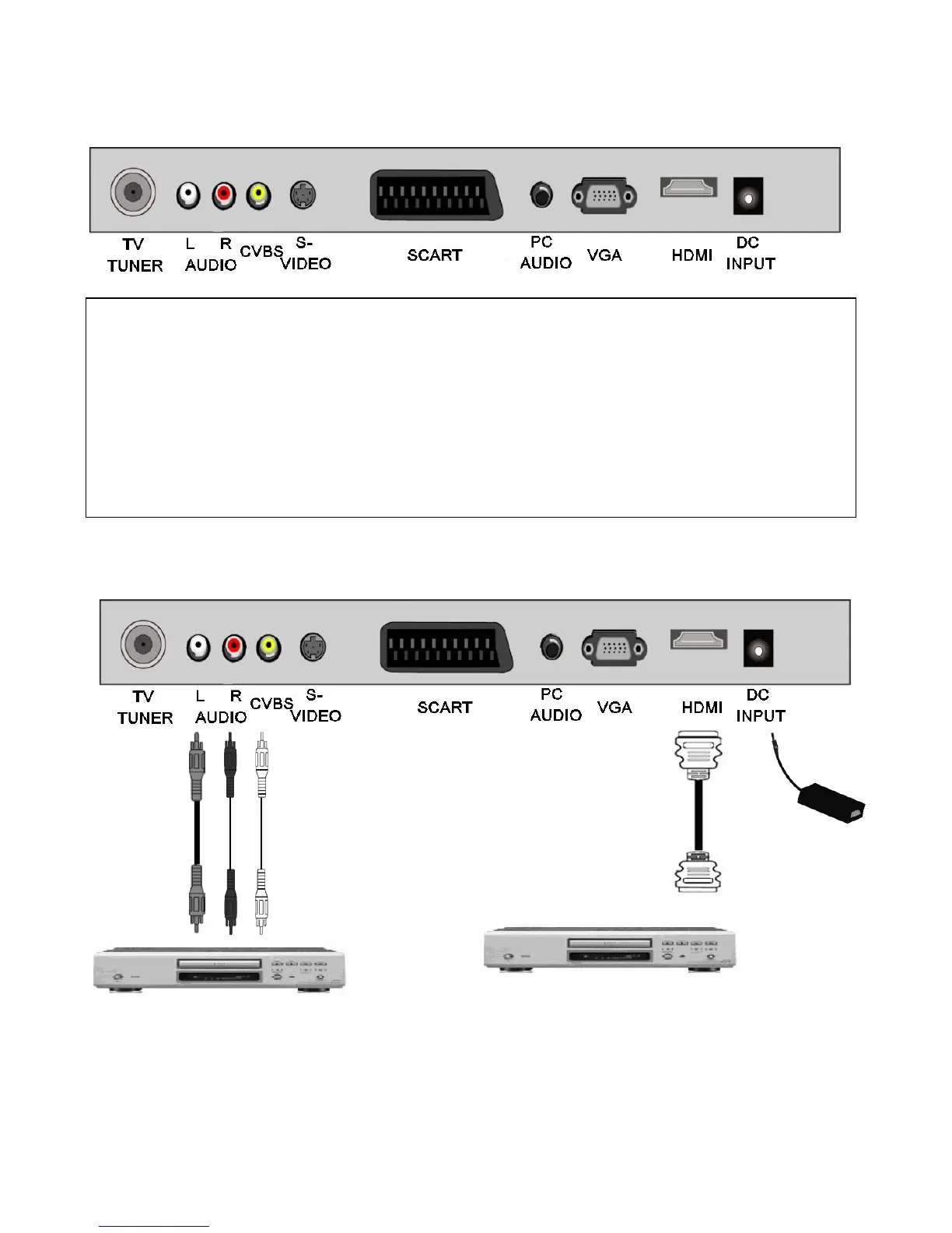 IMPORTANT. When making connections ensure the TV is disconnected from the DC