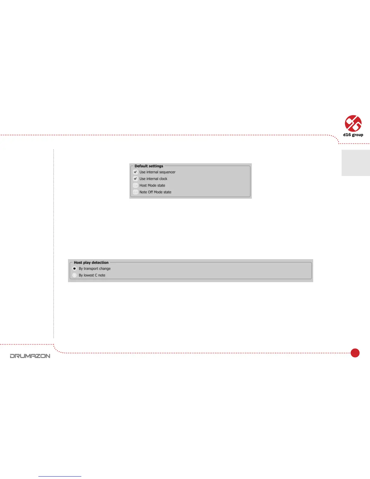 Default SettingsvaluesaresavedintheDrumazoncongurationleandappliestoallnewinstancesoftheplug-in.