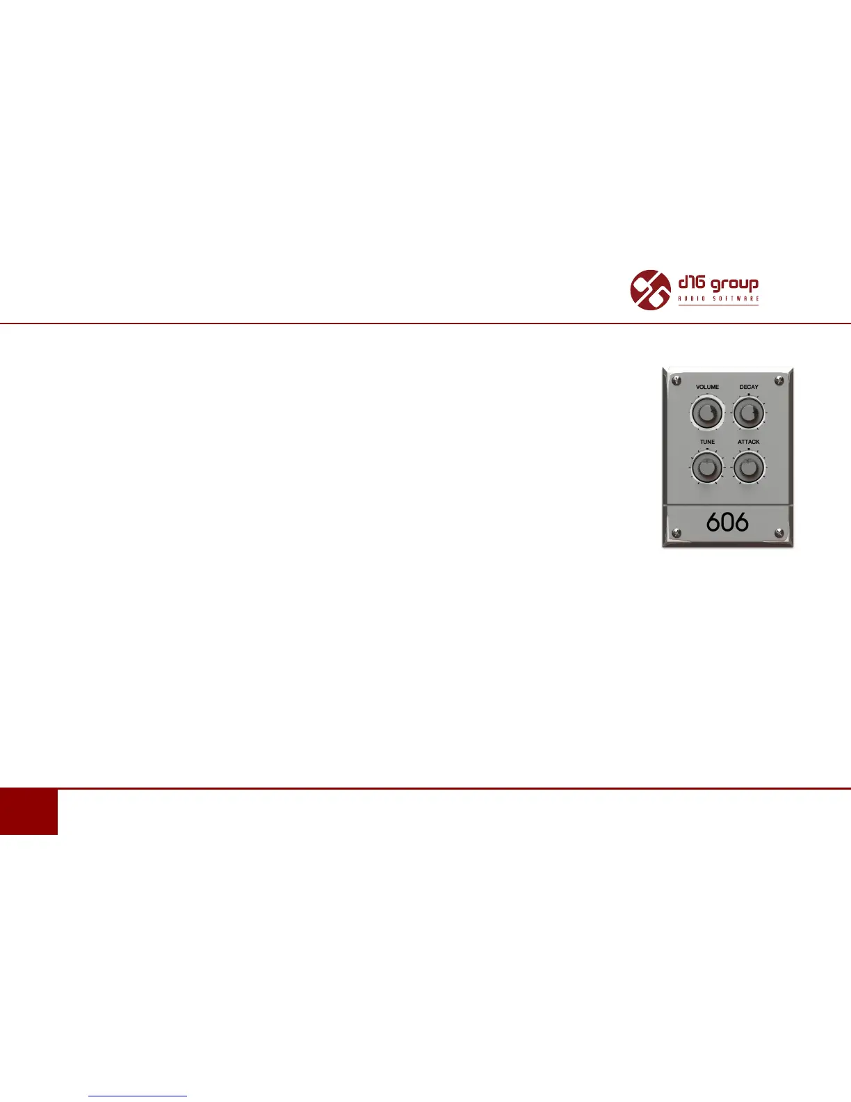606 is a generator engine that is a TR-606 bass drum emulaon - a typical short electro/hip-hop bass drum.