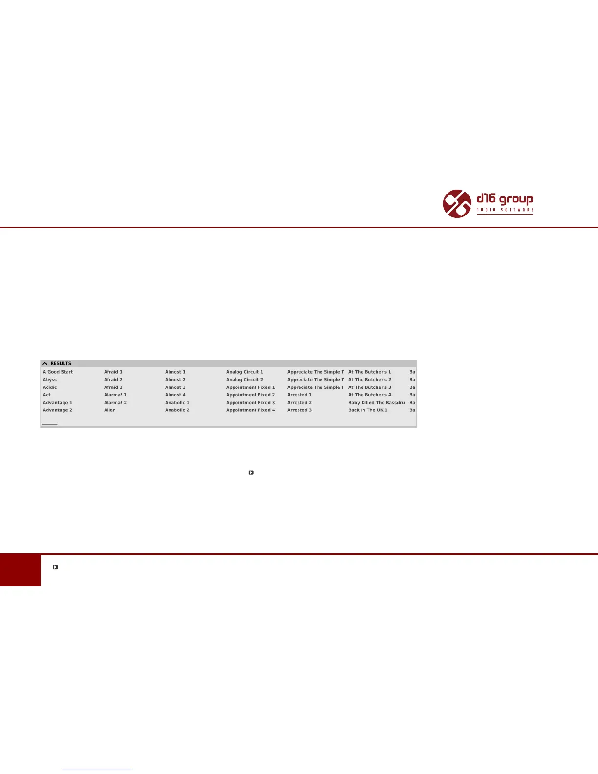 This is a list of presets from chosen resources that meet the ltering criteria. The basic funcon of this secon is browsing and loading