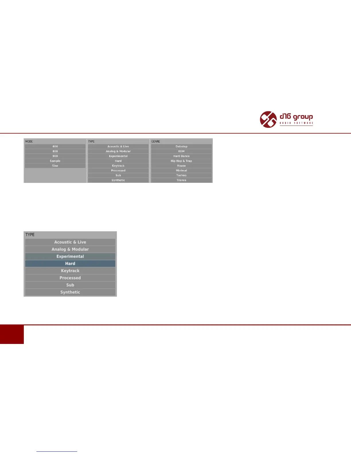 of the presets is marked with grey color: