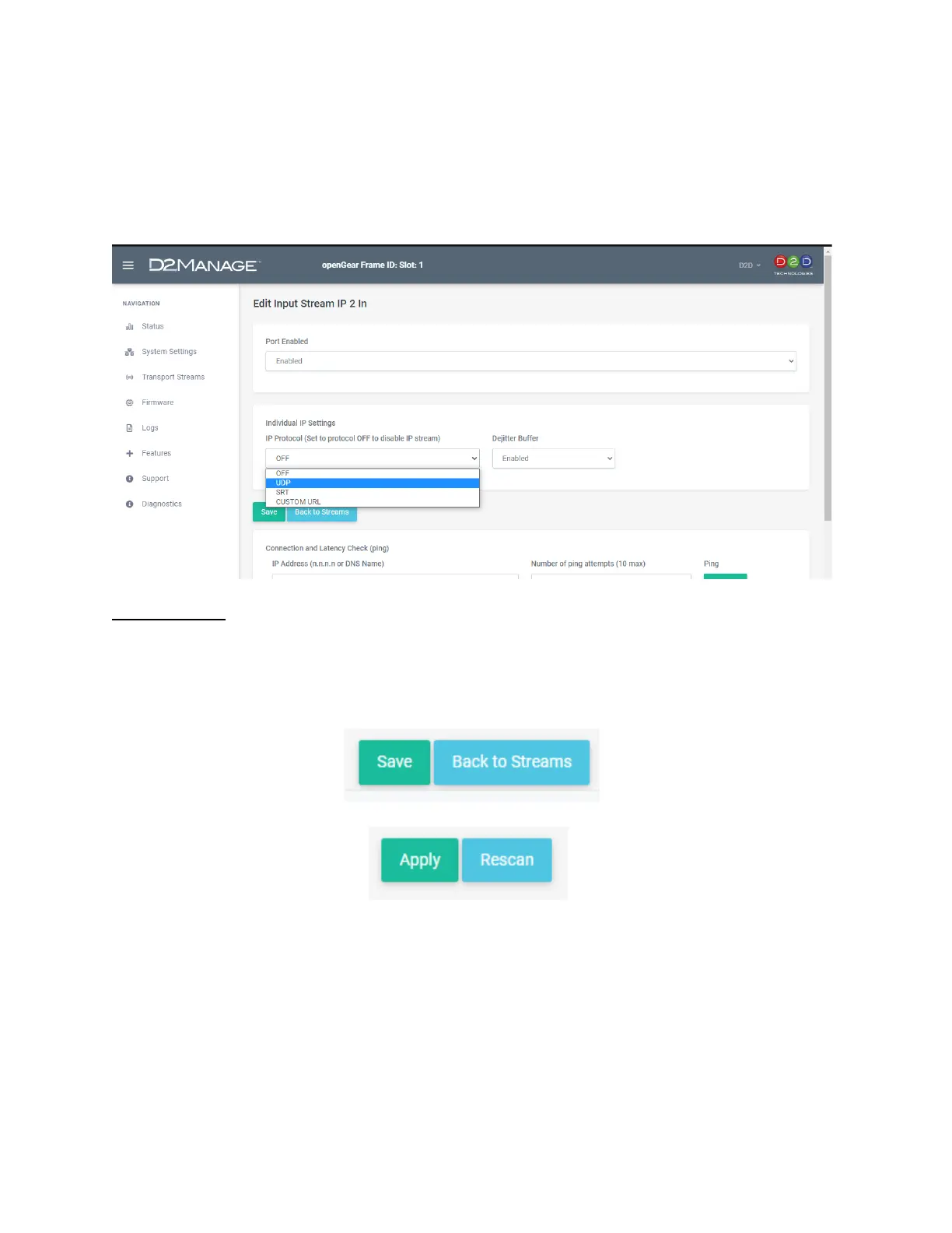 Once you are back on the Transport Streams page. You’ll need to click Apply and Rescan.