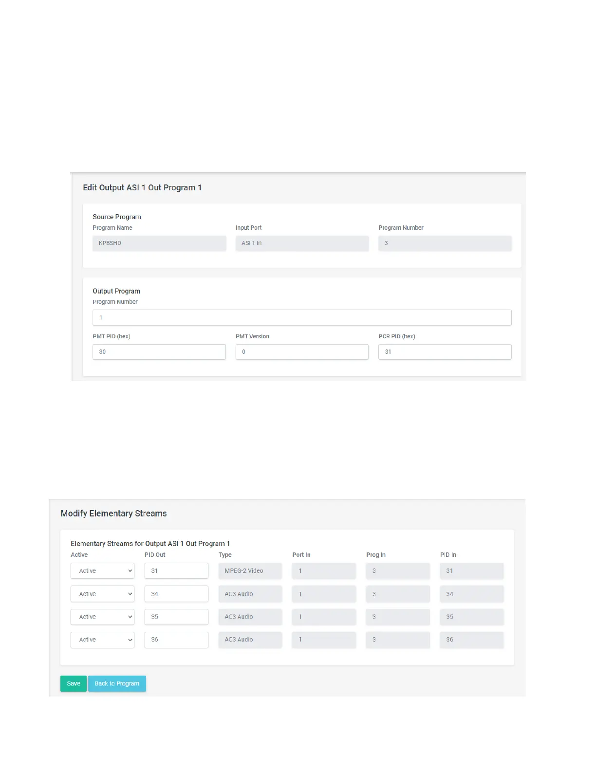 On the bottom half of the Edit Outputs pages is the table of Elementary Streams. Below that is the