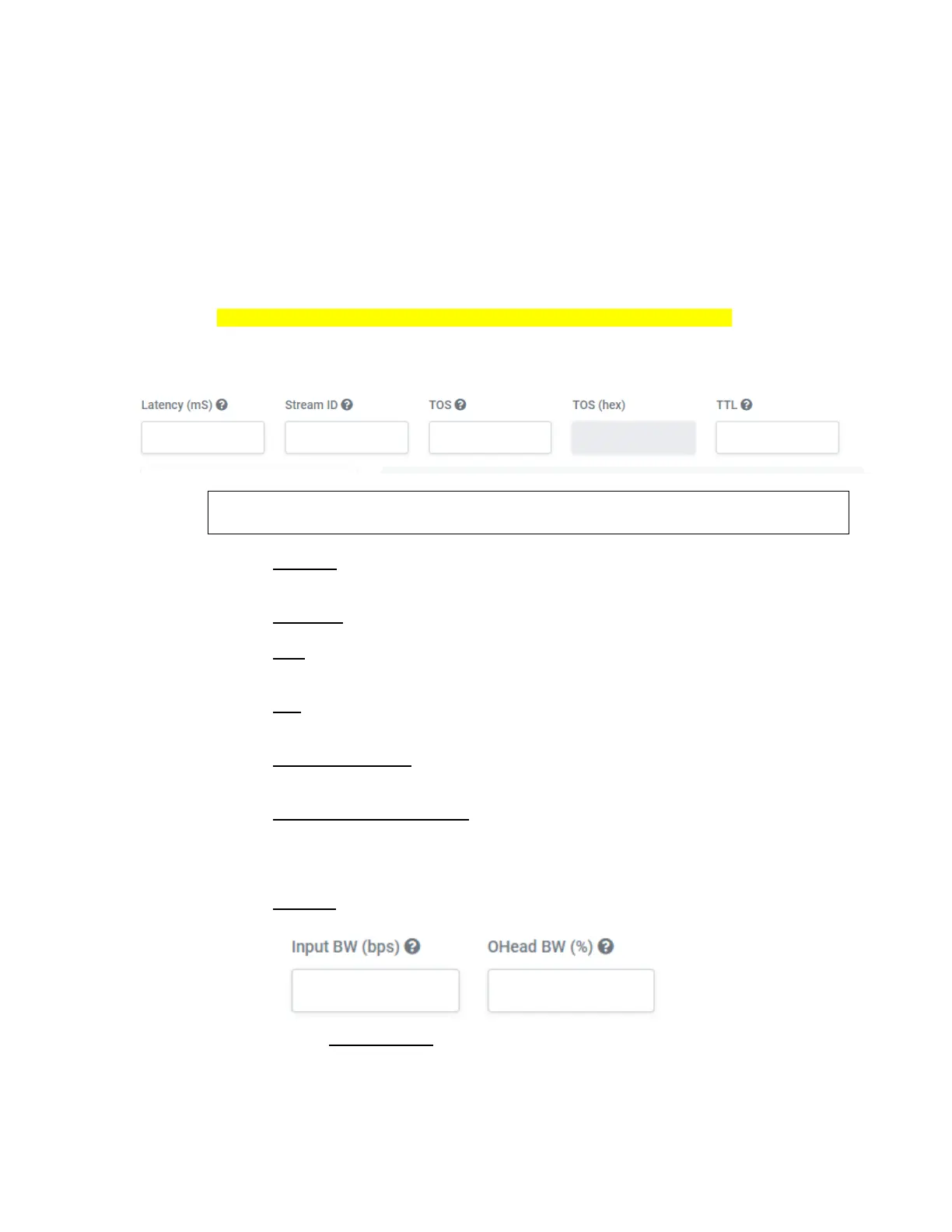 i. Input BW (bps): Defaults to 0 (uses calculated input BW). Also, can