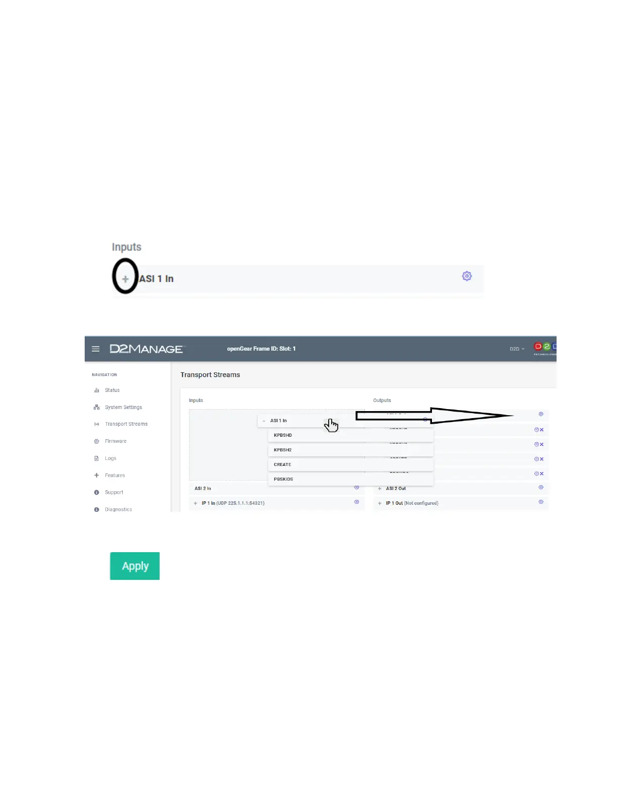 4. Click on the plus sign of the incoming ASI stream and drag it over to ASI 1 OUT. That will MUX it