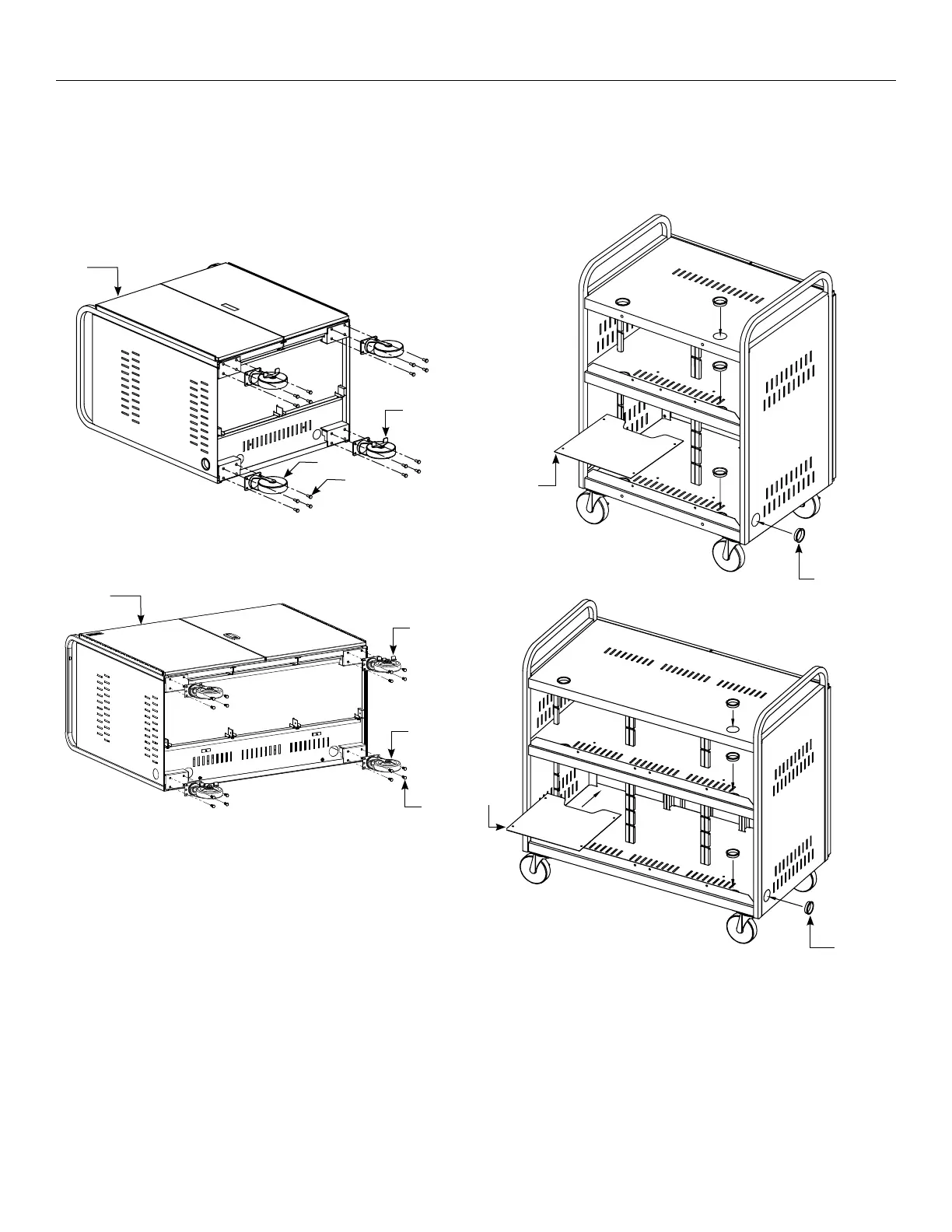 Plate Casters (3 & 4) using 5/16"-18 x 3/4" Bolts (B). For maximum