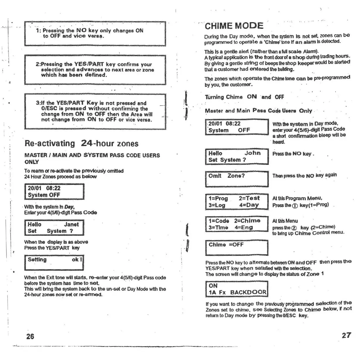 DA Systems Abacus 64 - Chime Mode; Turning Chime ON and OFF; Selecting Zones To Chime