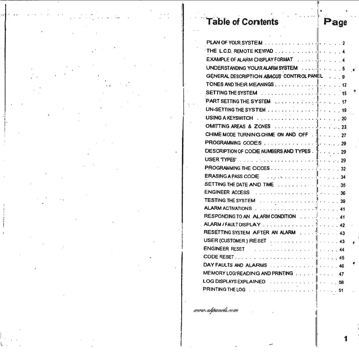 DA Systems Abacus 64 - Table of Contents