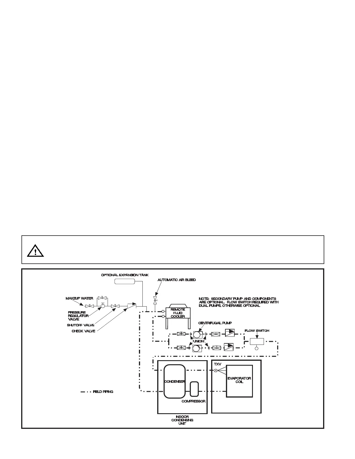 condenser water loop. Air vents must be installed in various locations in the piping system to