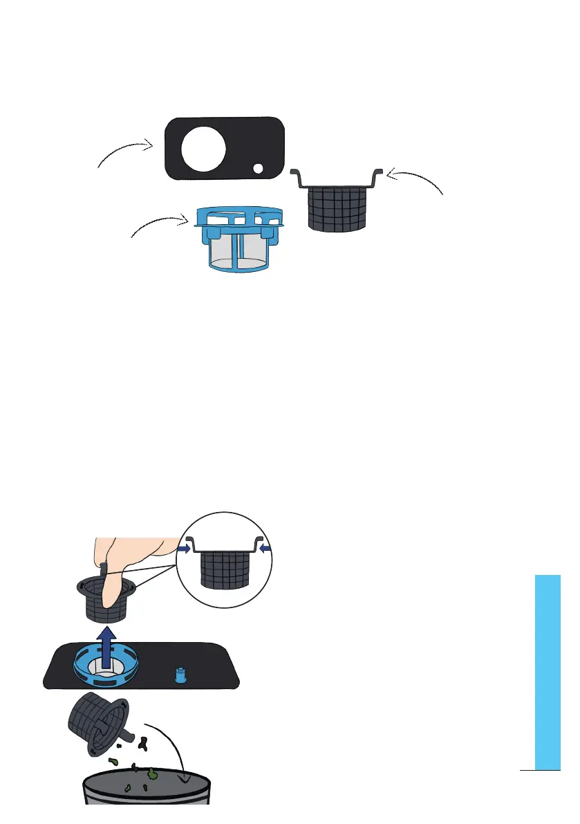 perforated stainless steel mesh. This first filtration stage allows the water to
