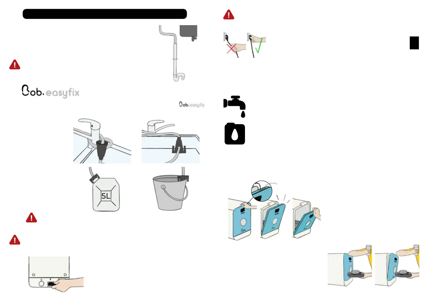 To avoid possible flooding, the container shall have a capacity of at least 5L.