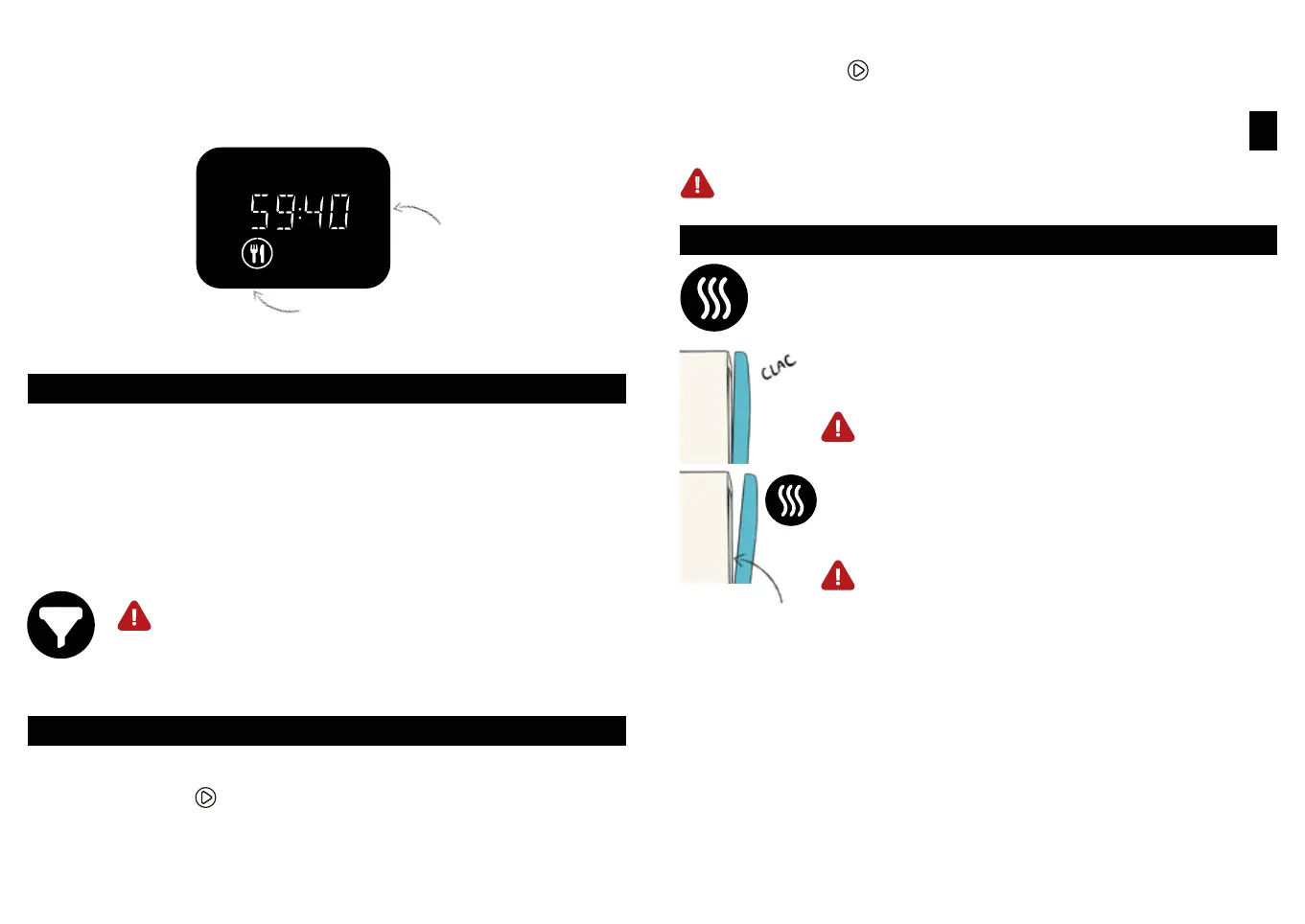 Warning Please note that hot steam is released when door opens