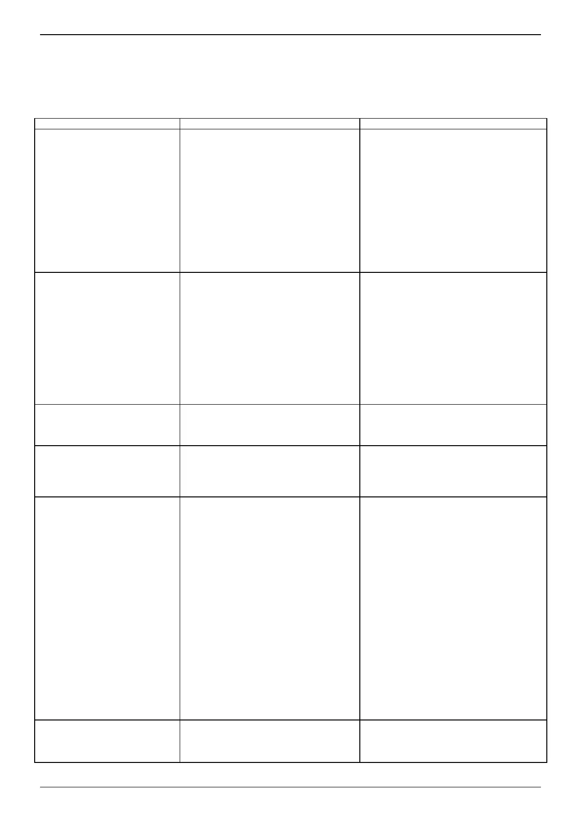 Här nedan återges en tabell med vissa råd för inställning av enheten i händelse av oregelbundenheter i driften.