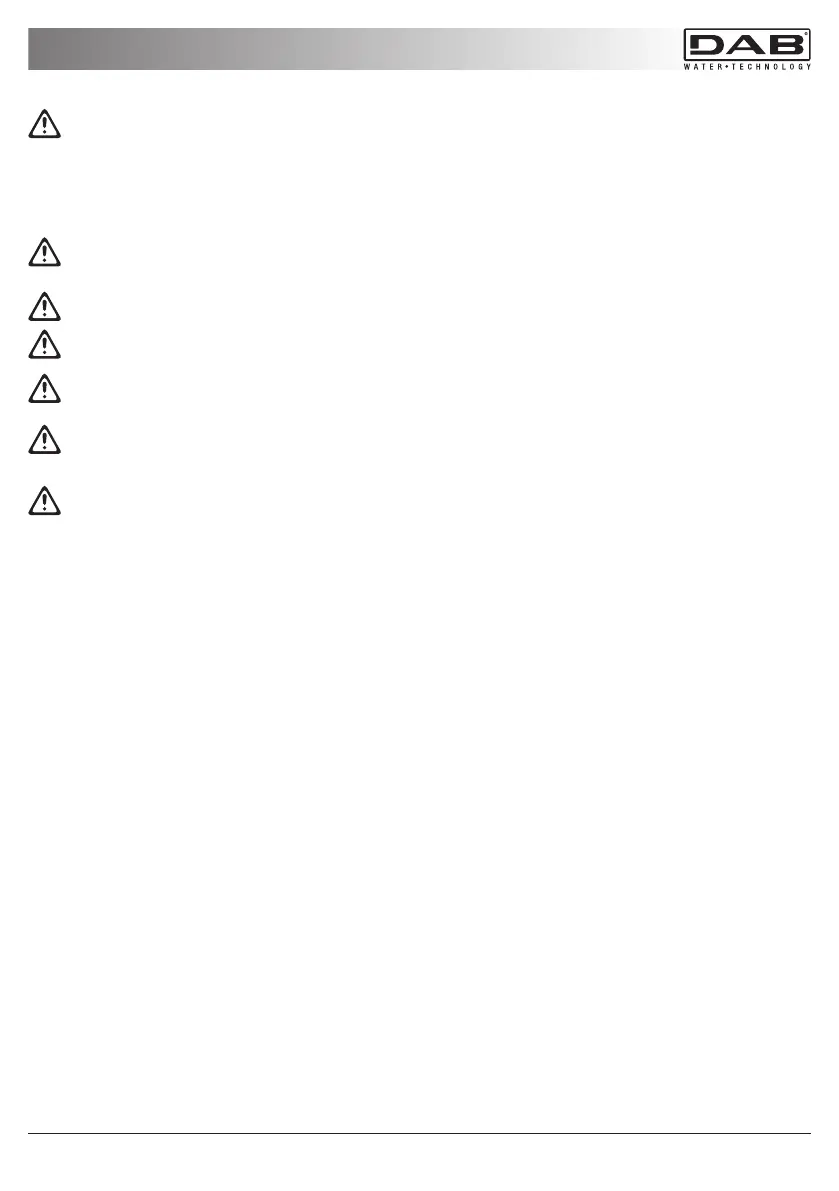 Cuando la bomba esté conectada a la red eléctrica, el usuario no debe tocar el agua.