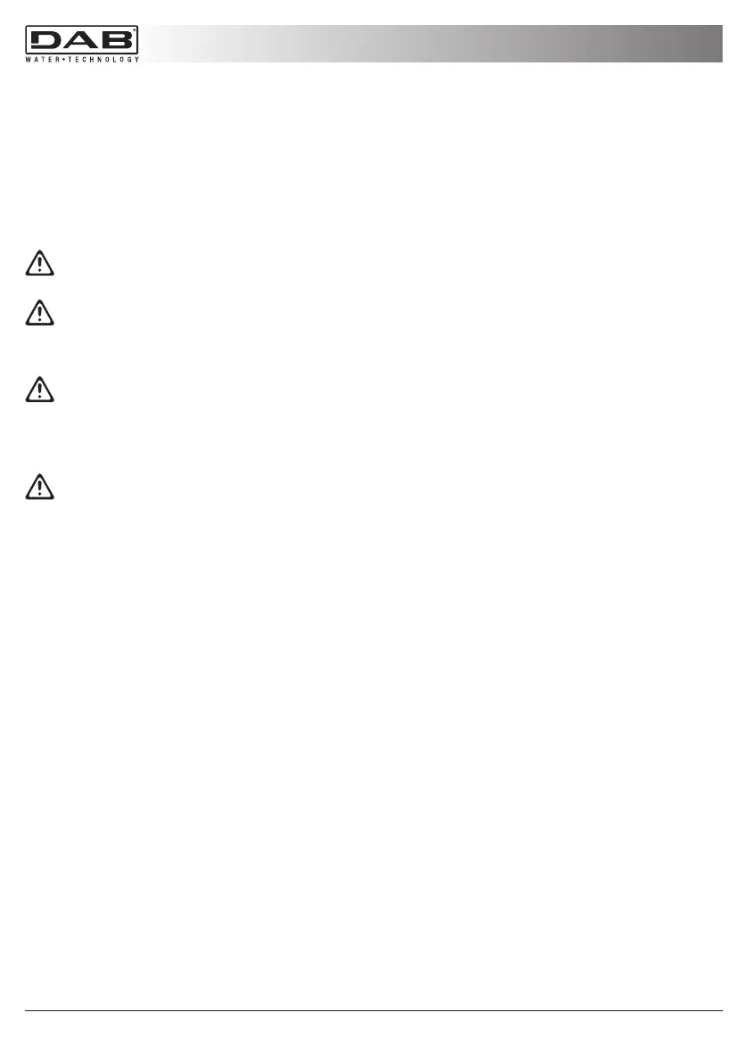 • De pomp mag alleen gebruikt worden wanneer deze zich in het water bevindt. Indien er geen water meer is,