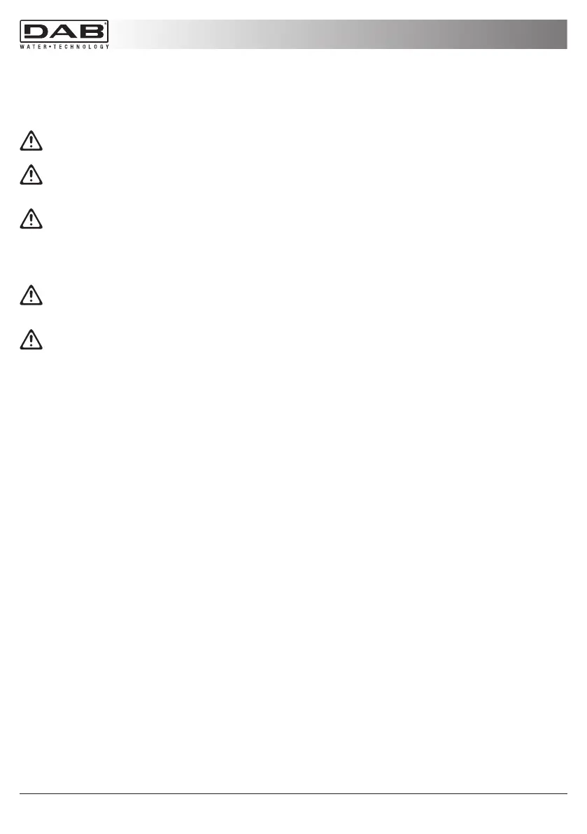 • Pumpa se uključuje isključivo dok je potopljena u vodi. Ako se voda iscrpi, pumpa se mora odmah dezaktivi-
