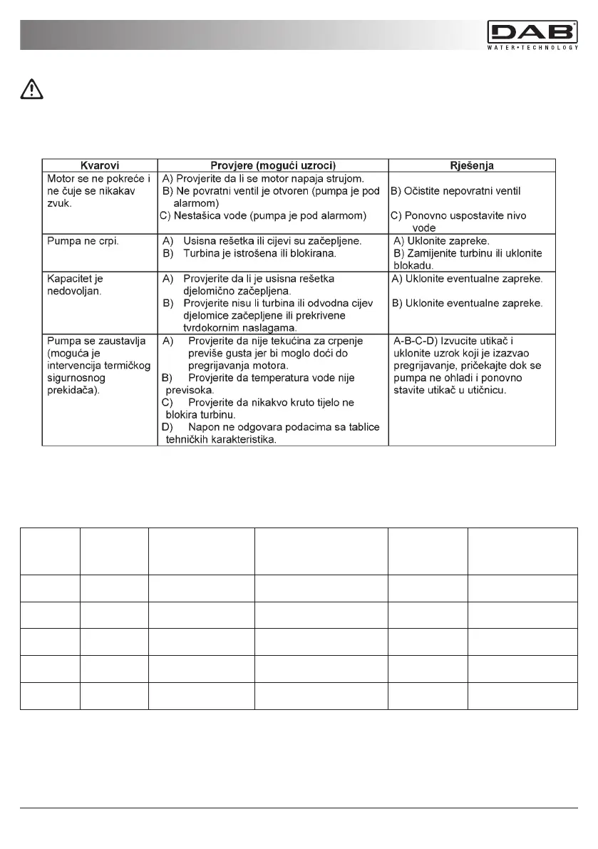 utikač iz utičnice). Ako su kabel za napajanje ili pumpa oštećeni na bilo kojem od električnih