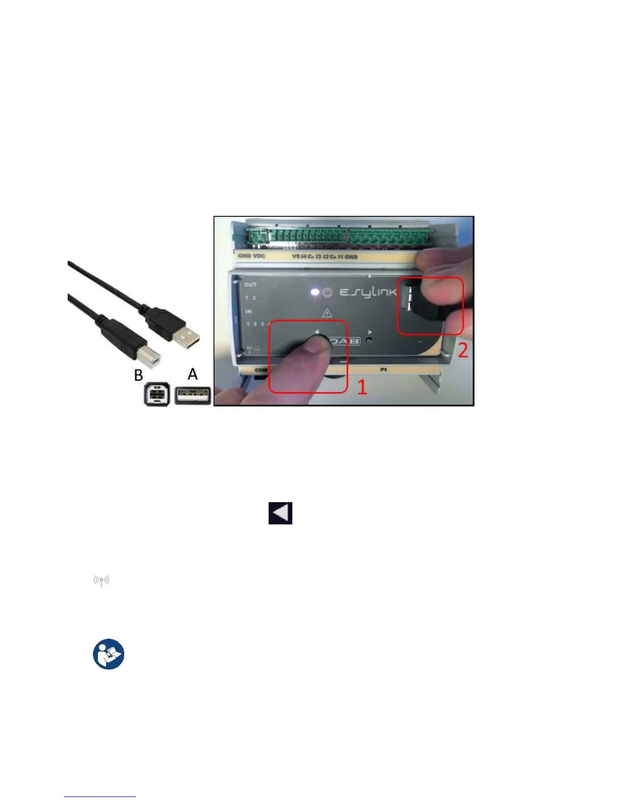 кабеля (типа B) в подходящий порт, расположенный в верхней части e.sylink.
