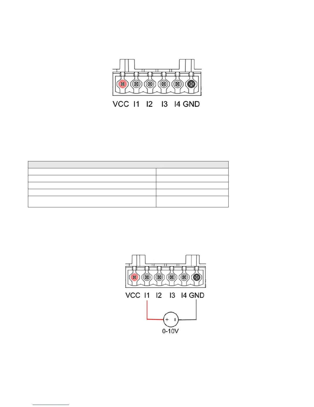 При применении напряжения 0-10В между вводами I1 и GND.