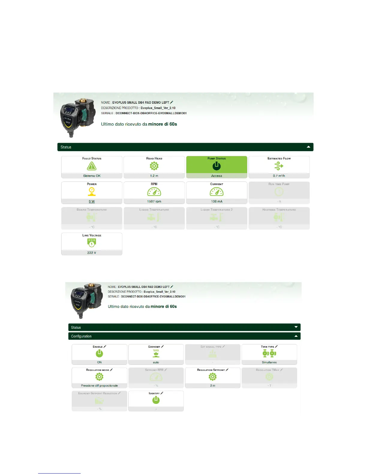 3. Cliccare sulla barra-menu STATO per visualizzare i parametri principali del componente.