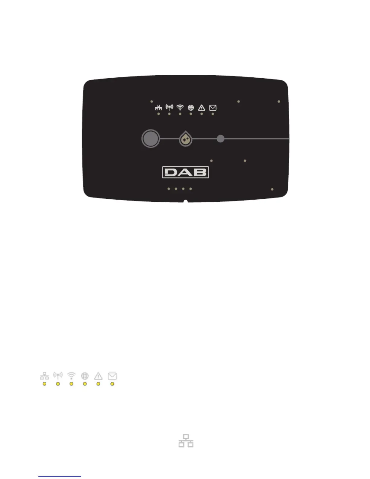 There are 6 Leds on the top of the DConnect BOX which are lit with a fixed light or blink to indicate particular