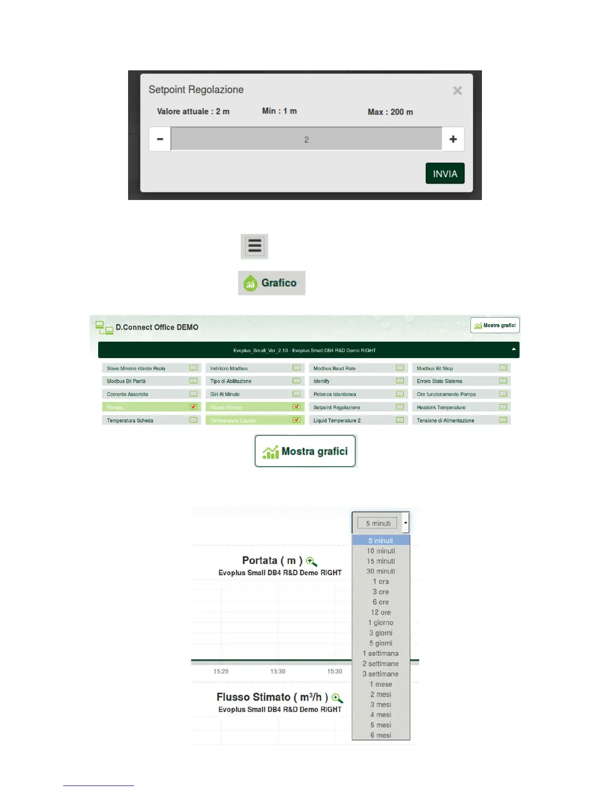 The updated graphs of the desired parameters will appear. You can change the time scale by clicking on the