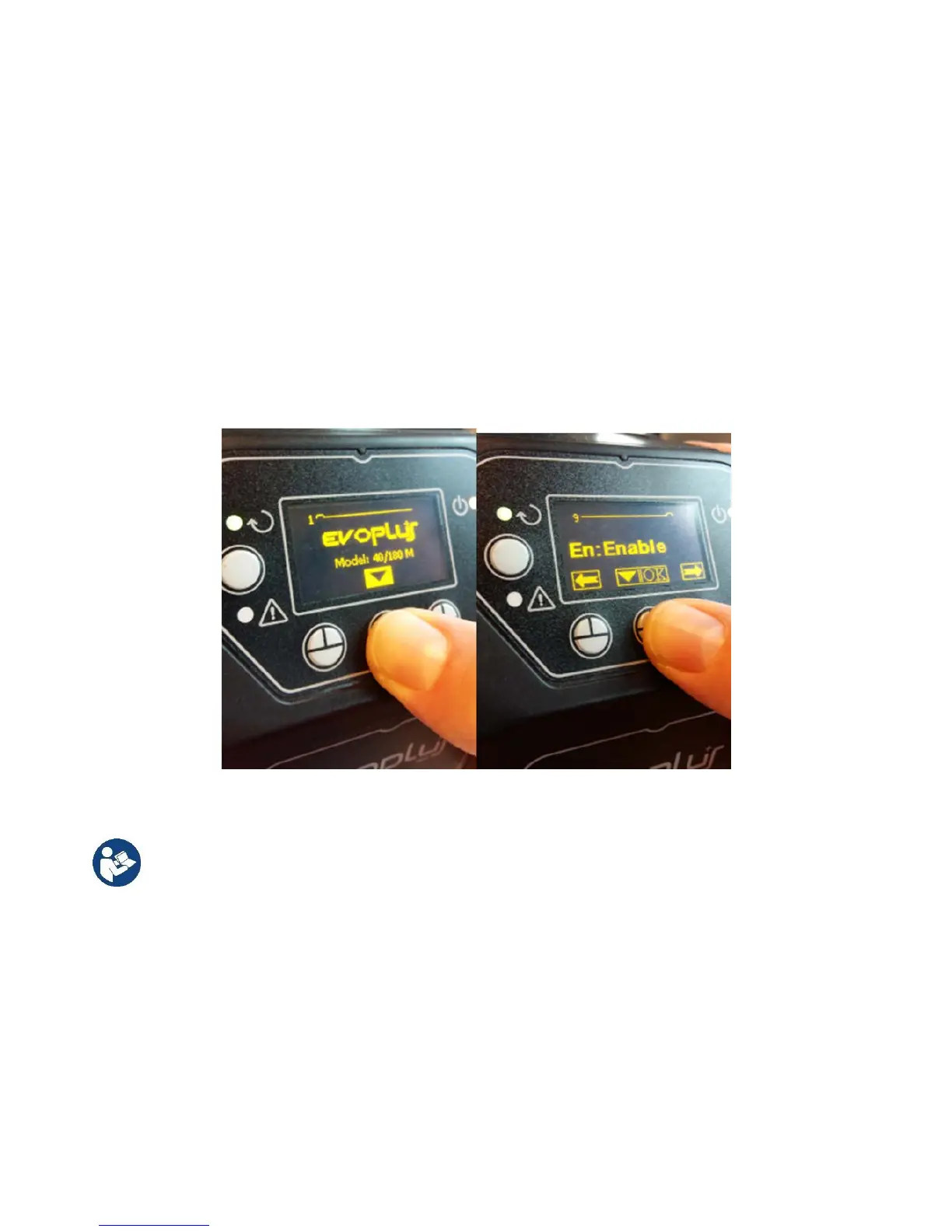 From the main menu, hold down the Menu button for 5 seconds until the “Evoplus” logo appears on