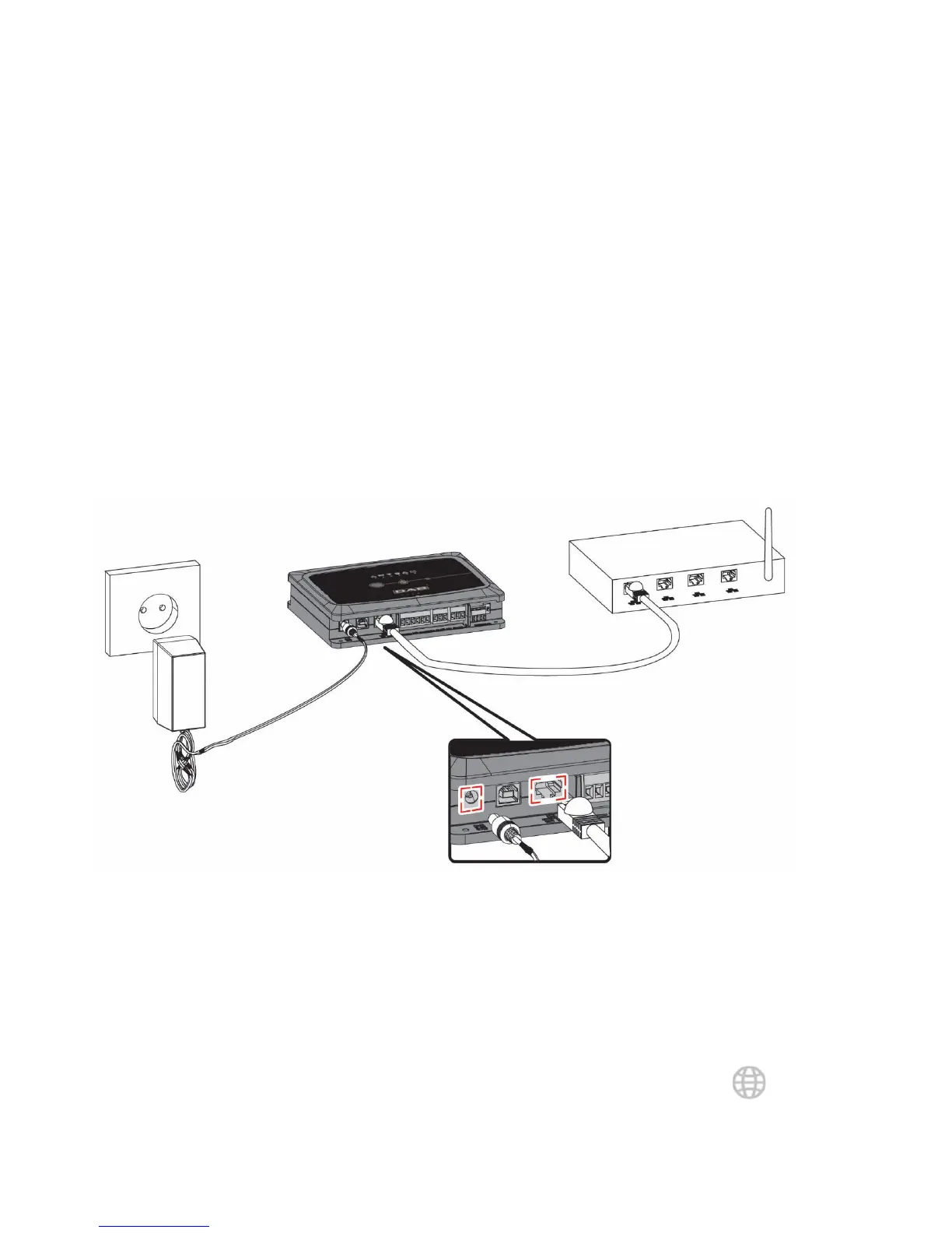 2. Подсоедините DConnect Box к штепсельной розетке с помощью входящего в комплект блока