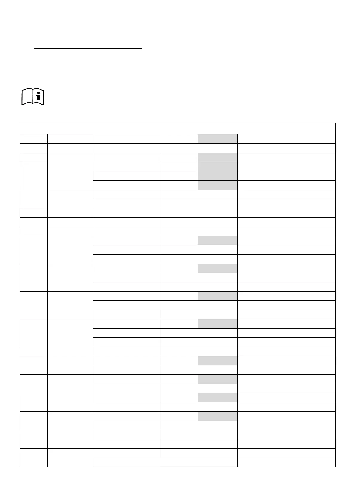 The factory (or default) settings are summed up in the following table. You can make a note of the values modified for