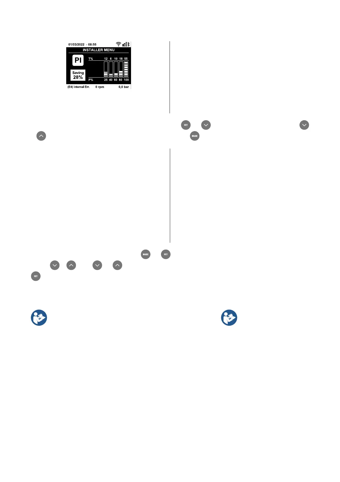 pressing or ). The and keys allow you respectively to increase and decrease the plant boosting pressure. Press