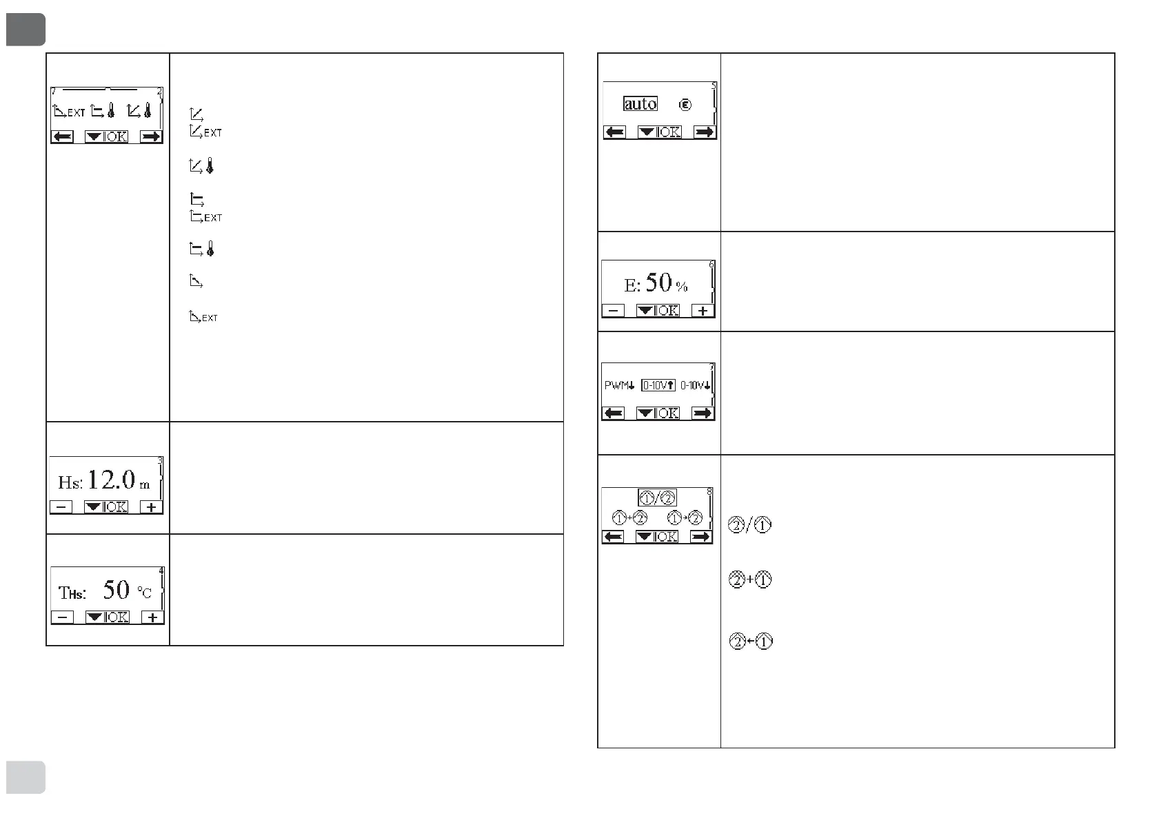 - pravá ikona = nasledujúce nastavenie;
