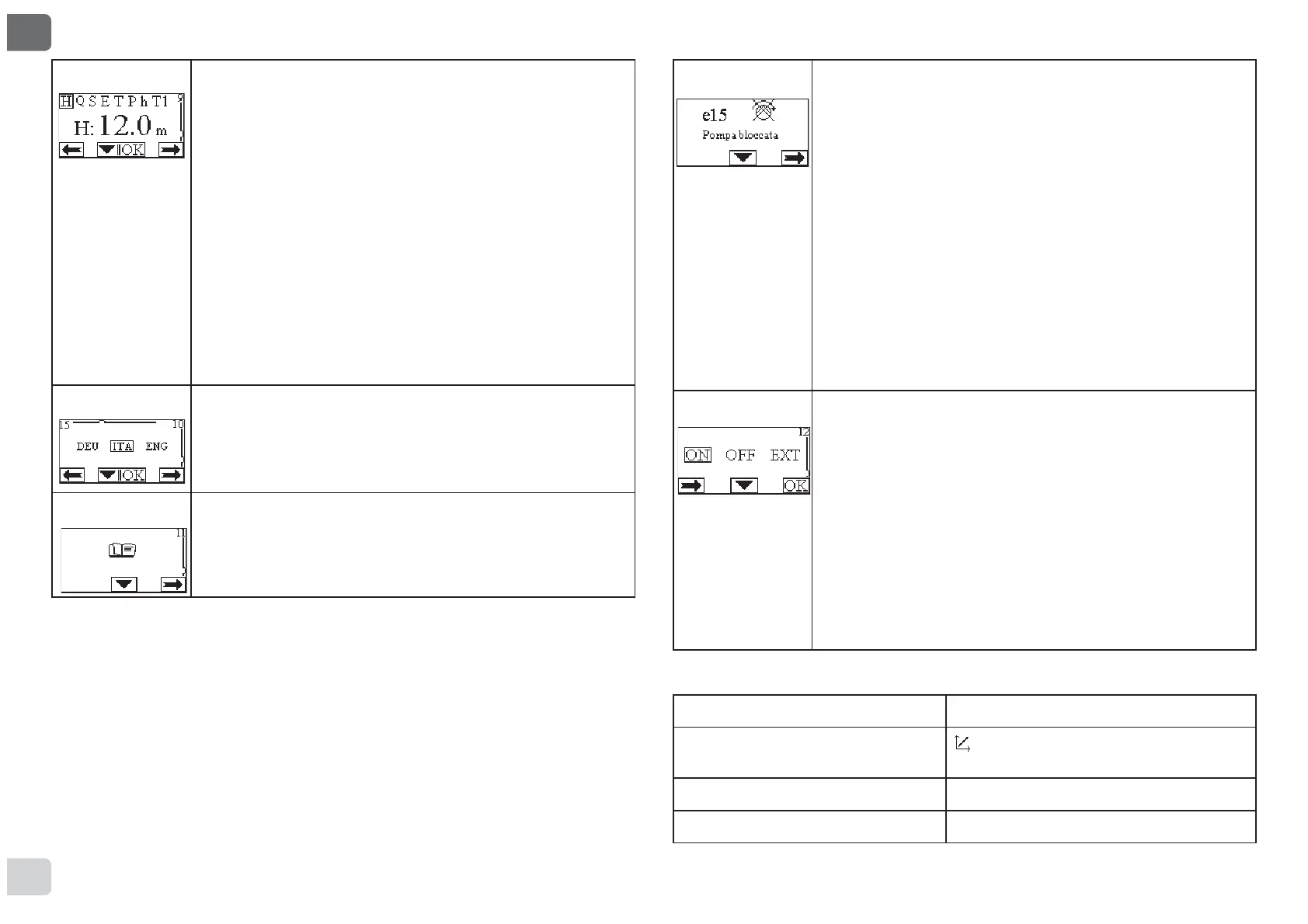 the pump is started (on the Home Page the messages “EXT”