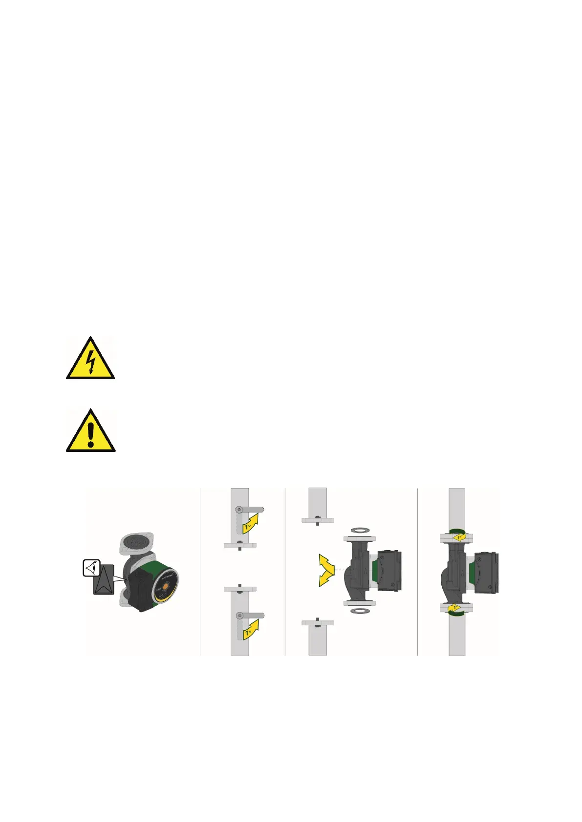 1. Fit the two gaskets when you mount the pump in the pipe. See fig. 1, pos. B.