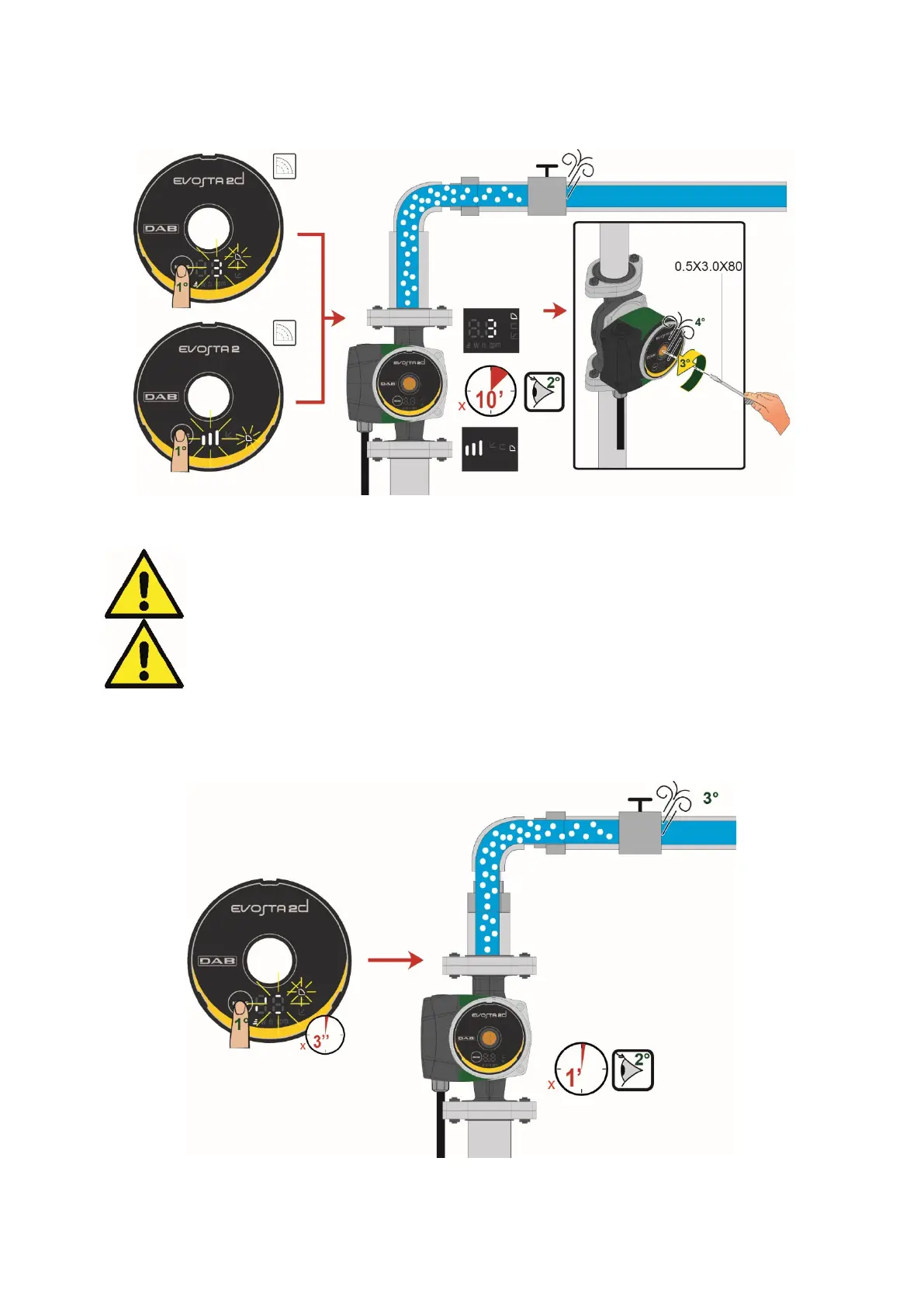 Automatic degassing occurs only for the Evosta3 pump. Hold down the Mode key for 3" and the function