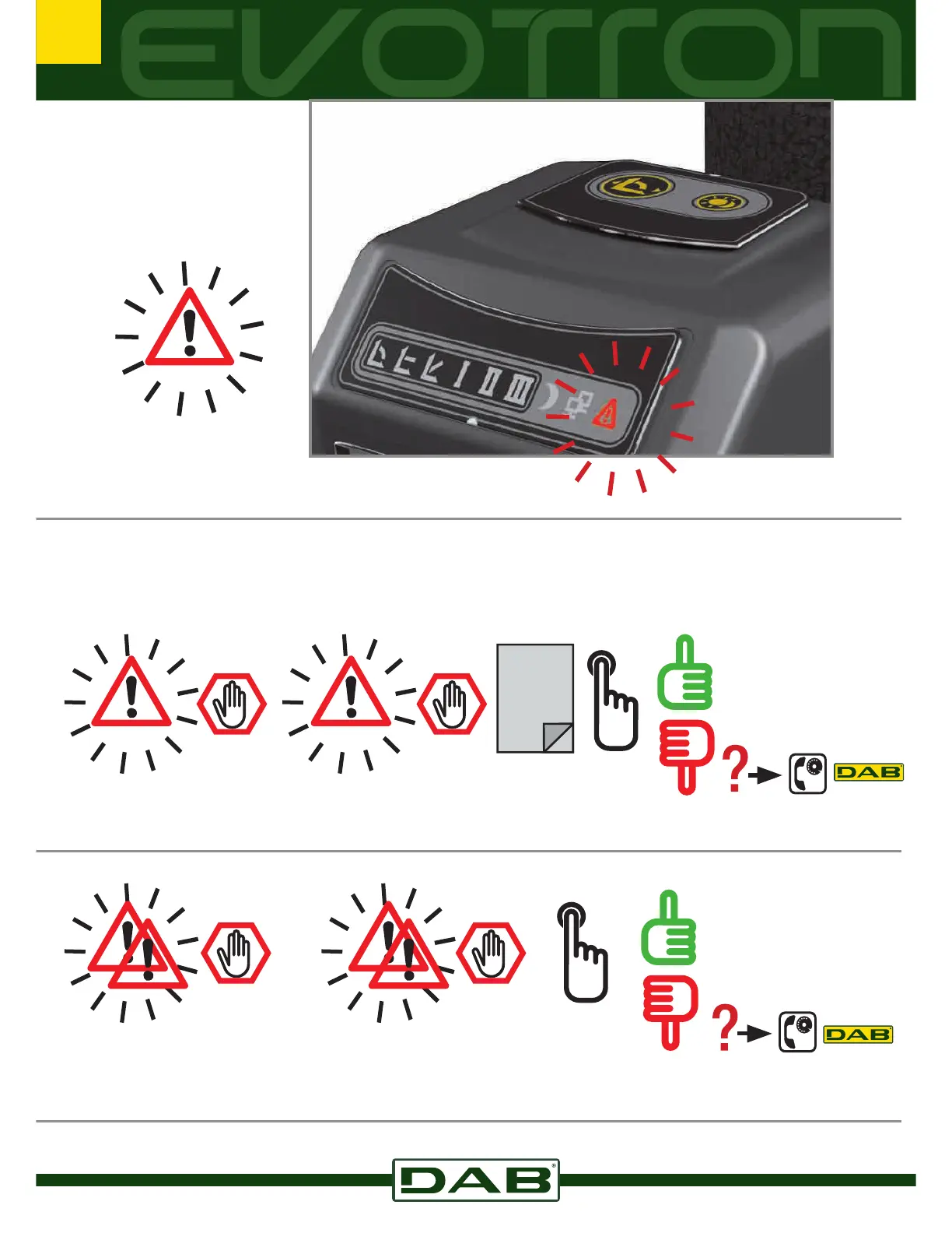 DAB EVOTRON - Alarms and Troubleshooting; Alarm Indicators and Meanings