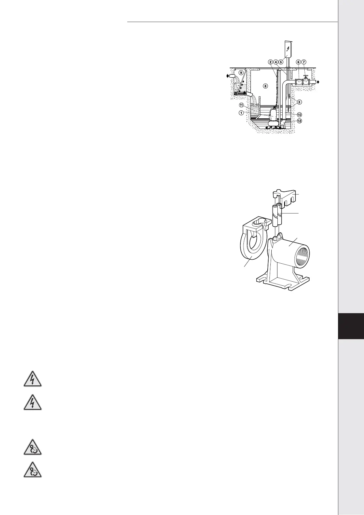 - Lyftvajerns eller -kedjans krok ska vara i linje med pumpens