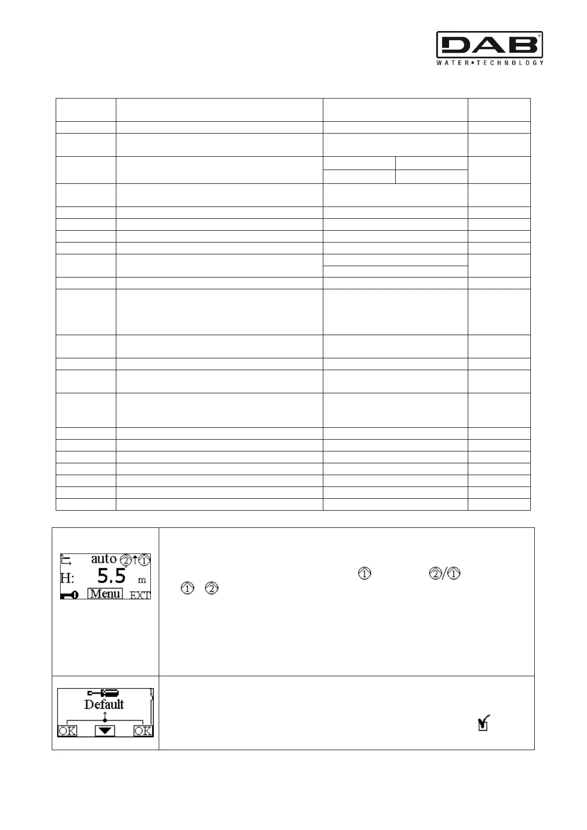The factory settings are set from Page 1.0 by holding down the left and right buttons at the same time