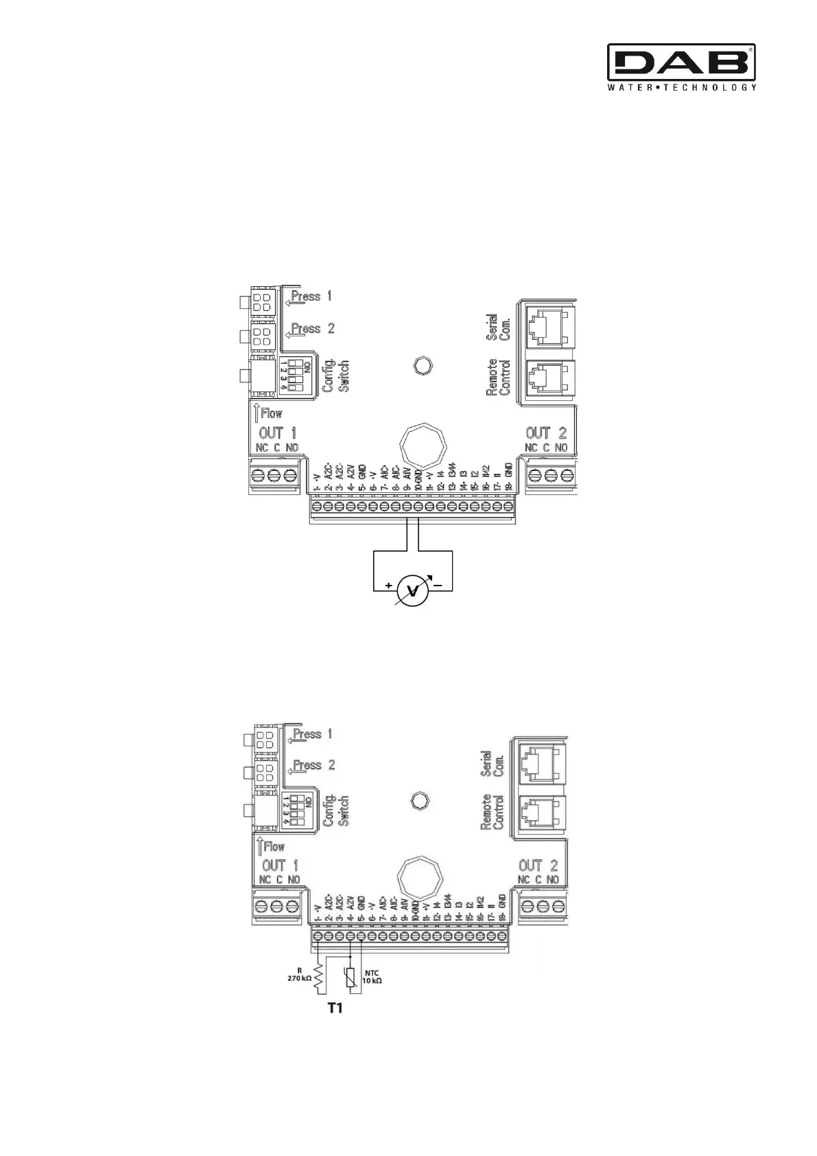 5.5.3 NTC wiring diagram for measuring the fluid temperature (T and T1)