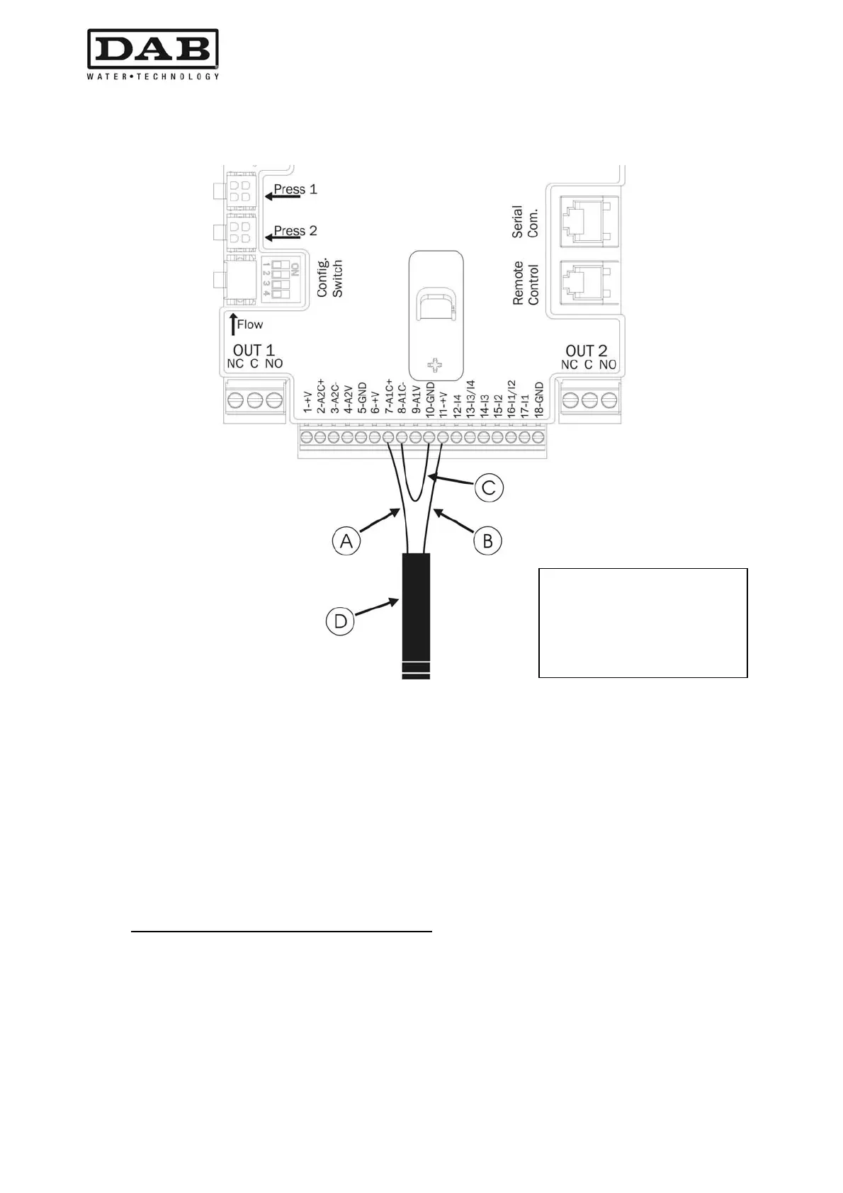 e dall'altro all'apposito ingresso sensore di flusso dell'inverter, contrassegnato dalla serigrafia "Flow" vedi