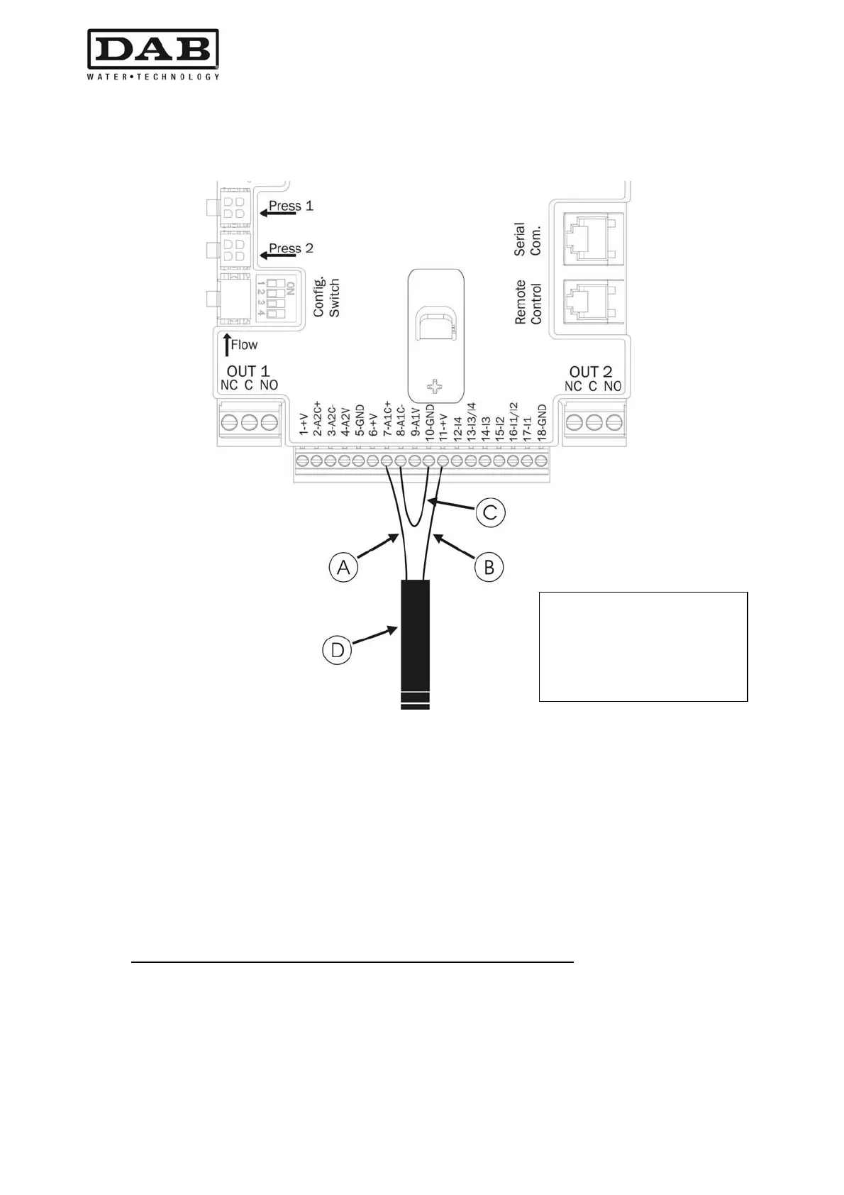 Датчик расхода поставляется вместе с собственным кабелем. Кабель должен соединяться с одной