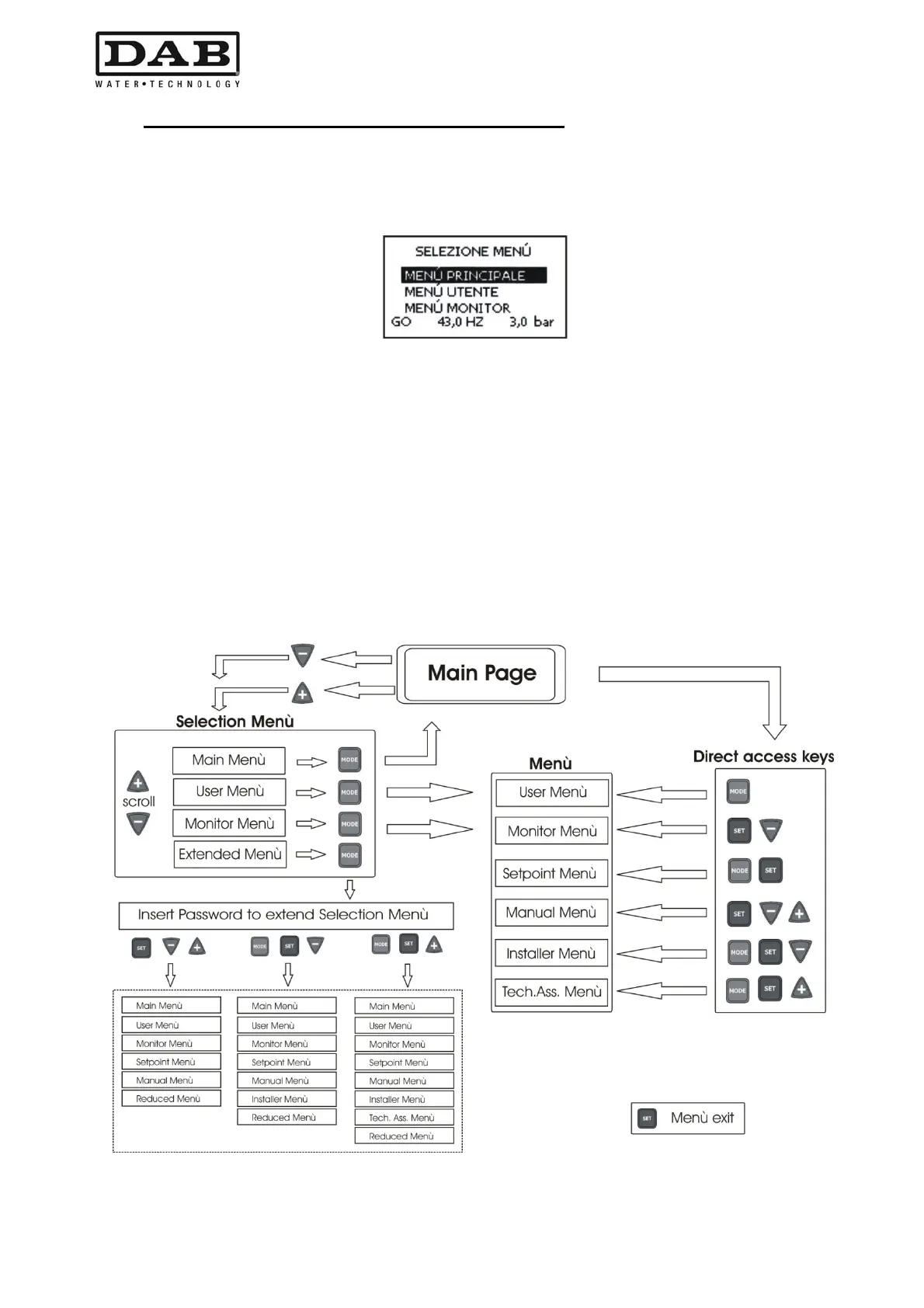 In Afbeelding 11 zie u een functioneringsschema voor de selectie van de menu's.