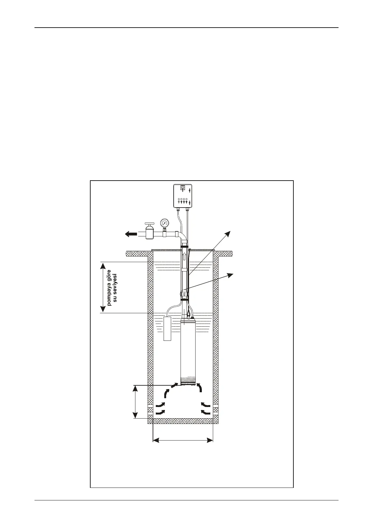 Pompa gövdesi daima tamamen suyun içinde bulunmalıdır.