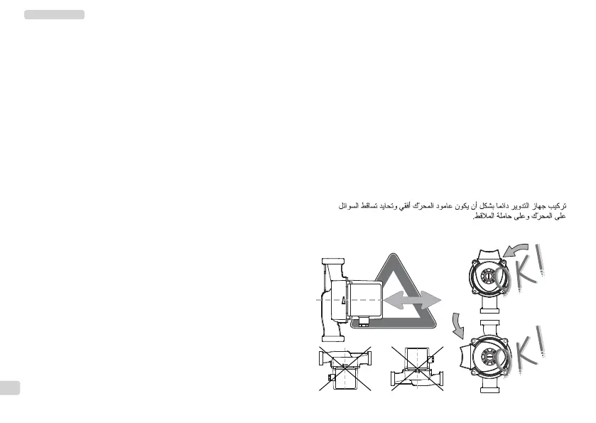 GB - ALWAYS t the circulator with the motor shaft horizontal, avoiding